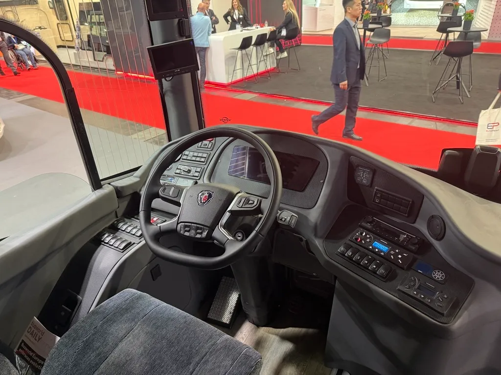 Najzanimljiviji deo izloženog modela svakako je Scania 13-litarski gasni motor koji koristi LNG kao pogonsko gorivo. Ovakav izbor donosi značajne ekološke prednosti, ali i tehničke izazove – zbog potrebe za velikim rezervoarom, deo zadnjeg prtljažnog prostora prilagođen je za smeštaj LNG tanka.
