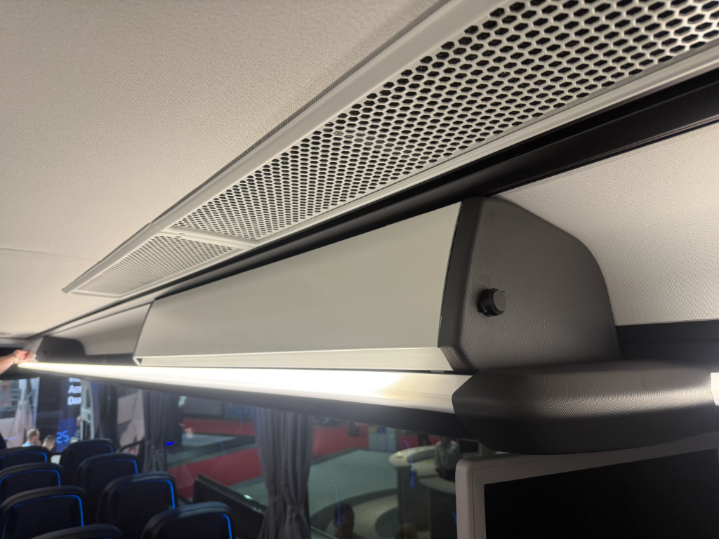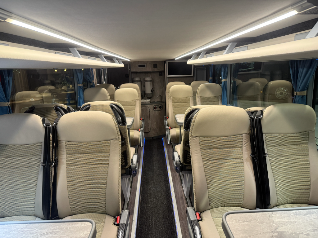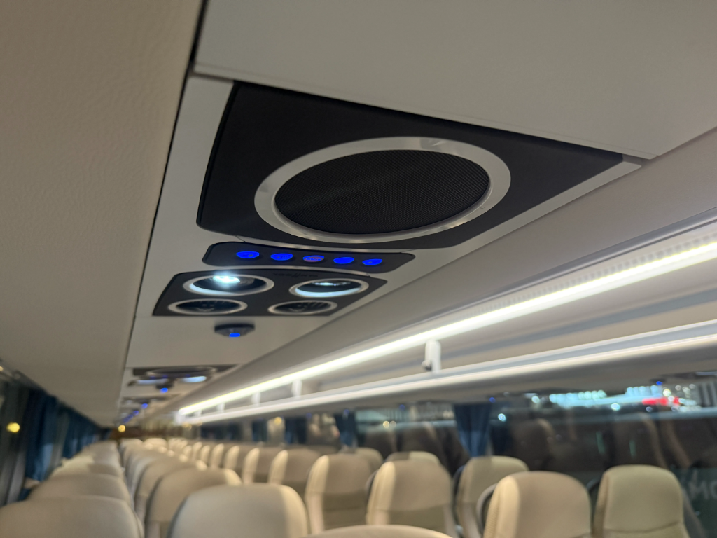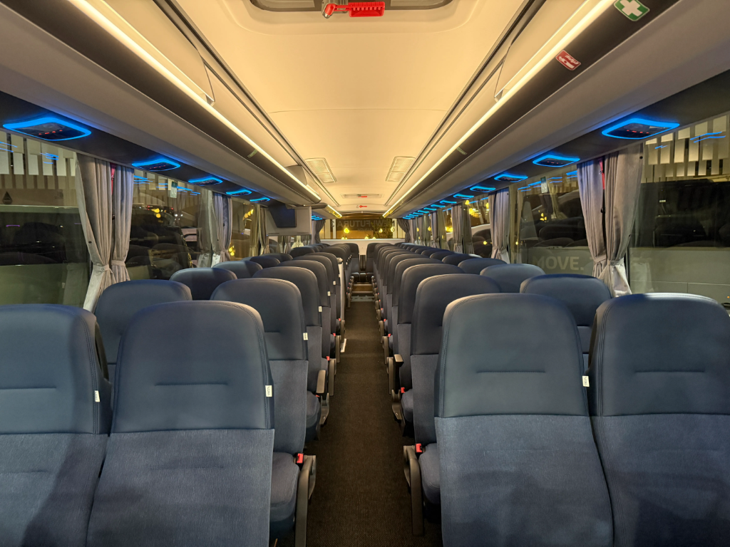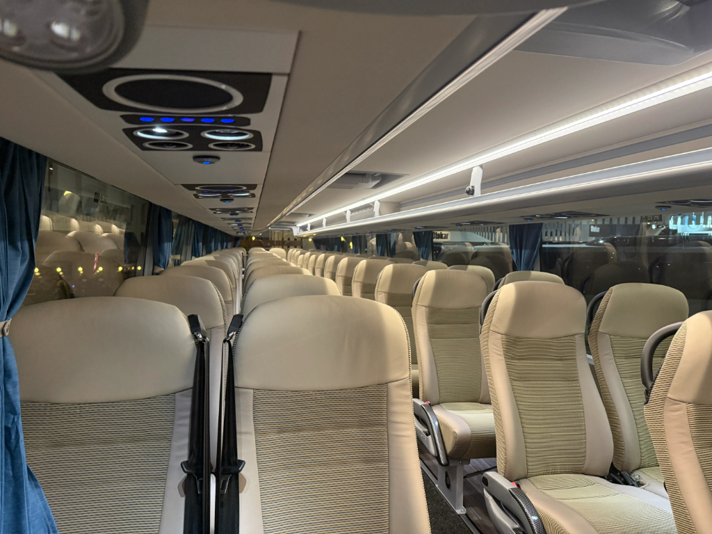Enterijer je opremljen VDL Class 300 sedištima sa USB punjačima i ambijentalnim osvetljenjem, dok je putnički prostor dodatno unapređen Bosch Coach Infotainment sistemom i sa dva 22-inčna ekrana.