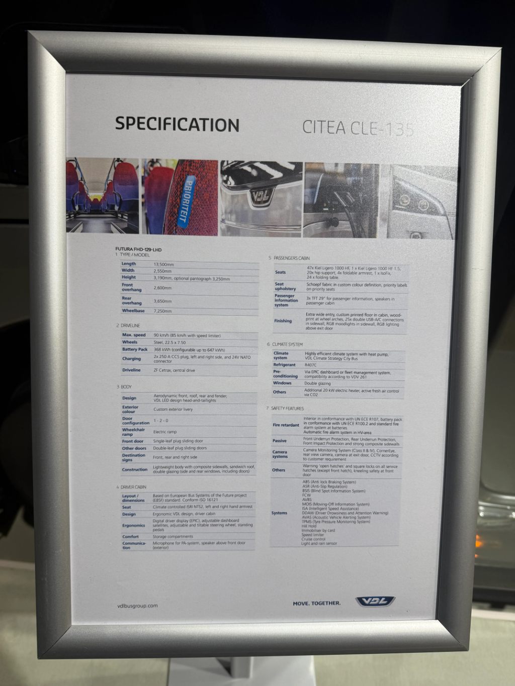 VDL Citea Low Entry dužine 13,5 metara namenjena je gradskom i regionalnom saobraćaju. Izloženi model bio je u potpuno električnoj verziji, sa baterijama kapaciteta 368 kWh, uz mogućnost proširenja do 647 kWh.