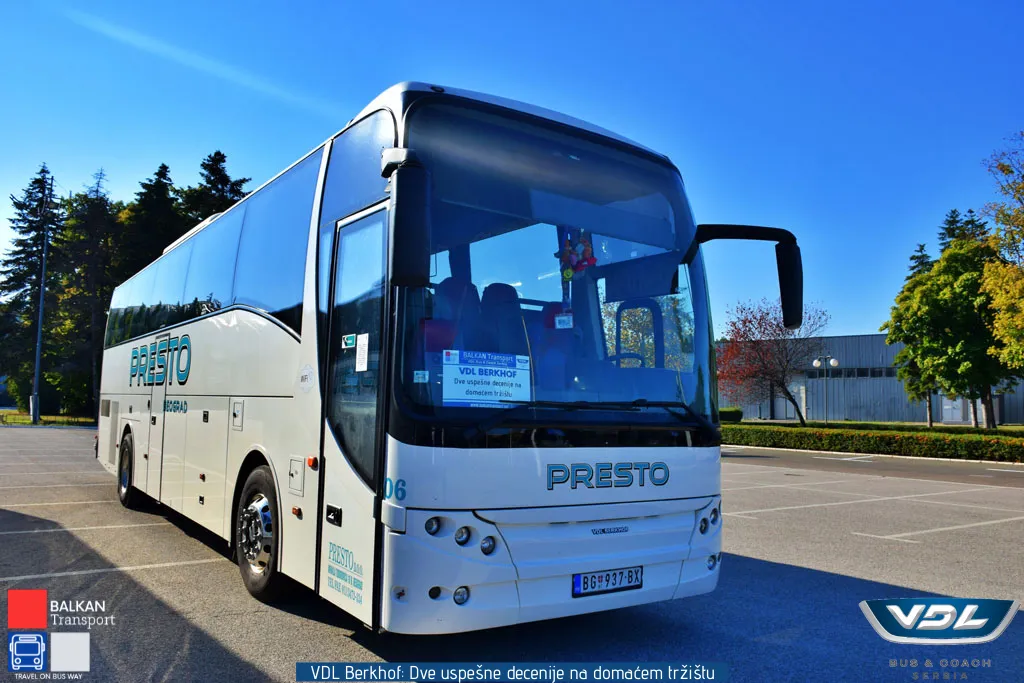 VDL Berkhof Axial 70 treće generacije u vozni park kompanije Presto došao je u oktobru 2015. godine iz Veldhovena u Holandiji. U odnosu na prethodnu generaciju sa zakošenom stenom, prepoznatljiv je po ravnoj prednjoj steni, i kao takav predstavlja prvi primerak treće generacije u našoj zemlji.
