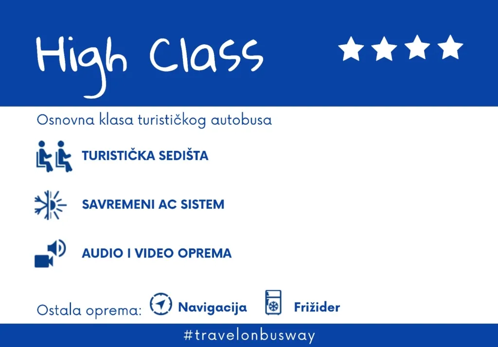 Svedoci smo da se često izraz (visoko) turističkog autobusa koristi u svakodnevnom govoru, ali gotovo da niko nije siguran šta to znači i šta predstavlja. S toga, na osnovu istraživanja i rezultata dosadašnjeg prisustva na tržištu definisali smo klase putovanja za turističke autobuse.