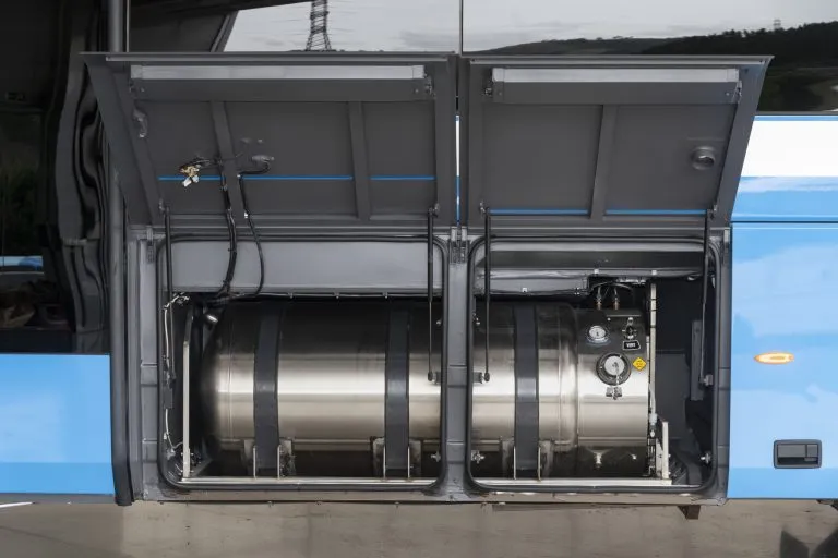 Ima dva cilindrična kriogena (-162º C) rezervoara postavljena uzdužno sa obe strane centralnog prostora za prtljag, koji je potpuno vodootporan i izolovan od prostora za putnike. Imaju kapacitet gasa od 704l, a teški su 830kg kada su potpuno napunjeni. Oba rezervoara u skladu su sa propisom R66.02, a komponente i instalacija zadovoljavaju sve sigurnosne protokole prema propisu 110. Irizar je ponudio dve opcije za rezervoare: jedan rezervoar ili dva razdvojena rezervoara koja nude različite domete kao i različite kapacitete prtljažnog prostora.